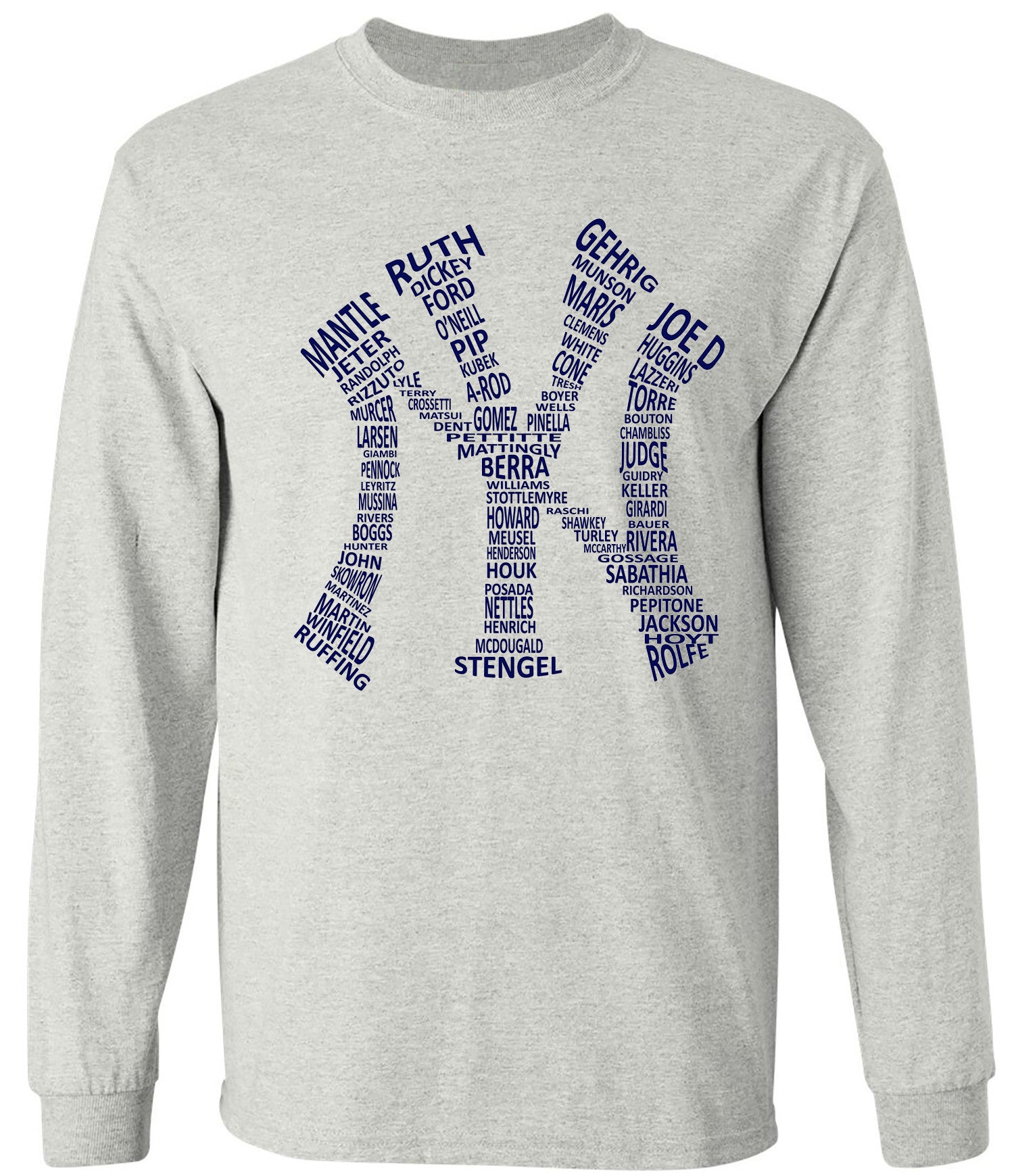 Here's a blast from the past for Yankees fans. Our exclusive legends graphic tee features the greatest Yanks from the days of Ruth & Gehrig to modern times. Our tees are supersoft preshrunk 100% ringspun cotton. Choose short or long sleeve styles.